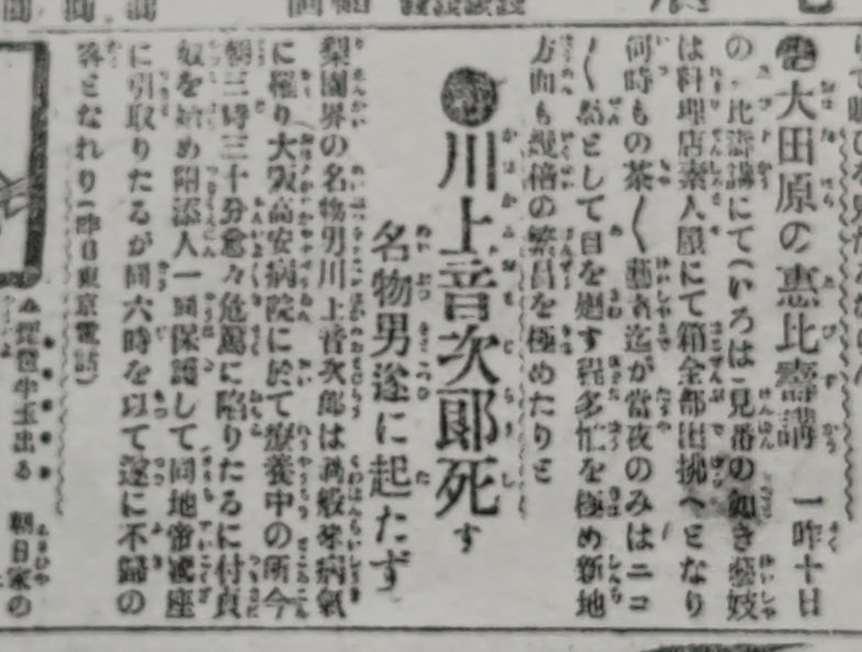 川上 貞 昭和21年(1946)熱海の別荘で死去。享年75歳。